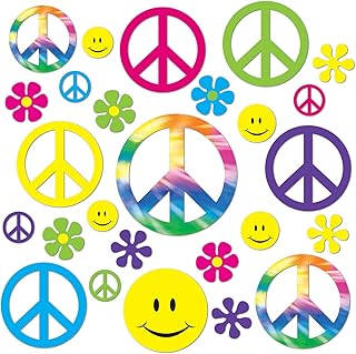 Beistle 54185 Retro 60's Wall Sign Cutotus 42 Piece Smiley Face Peace-Zeichen Blumendekorationen, Papier, mehrfarbig