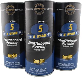 Sun-Glo silicone powder wax is specially compounded to not lump or injure any playing field surface. Preferred by professionals and used in tournaments everywhere, Sun-Glo is the best bet for your shuffleboard needs! Speed 5 (Formerly 5 Star) - For a medium-fast game, and ideal for all 14- to 22-foot shuffleboard playing fields. Speed 5 (Formerly 5 Star) $9.50 - $115.00 For a medium-fast game, and ideal for all 14- to 22-foot shuffleboard playing fields. Quantity: Add to cart SKU: 2010 Description Additional information Description Another popular powder for both professional and social players. This powder gives players a comfortable game - with optimum speed and control.