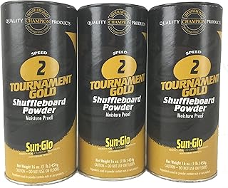 Sun-Glo silicone powder wax is specially compounded to not lump or injure any playing field surface. Preferred by professionals and used in tournaments everywhere, Sun-Glo is the best bet for your shuffleboard needs! Speed 5 (Formerly 5 Star) - For a medium-fast game, and ideal for all 14- to 22-foot shuffleboard playing fields. Sun-Glo - Sun Glo Corp. #1 SPEED POWDER I N T H E W O R L D BUY NOW SILICONE SPRAY PURE SILICONE BUY NOW WEIGHTS SMALL OBJECT, BIG JOB BUY NOW SPEND $100 or more and pay only $25 for shipping your items via FedEx Ground. Applied automatically during checkout. Maintenance Accessories