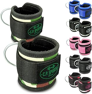 C.P. Sports Fußschlaufen 2er Set Ankle Straps 2 Stück gepolstert One Size mit D-Ring + 1 Paar Karabinerhaken für Kabelzug Seilzug Bodybuilding Fitness Training Gym
