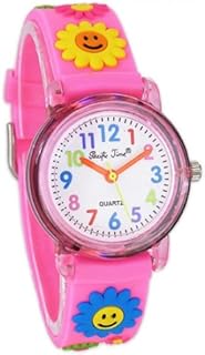 Kinder-Armbanduhr fröhliche bunte Blumen Analog Quarz pink 20042