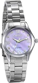 Damen Armbanduhr Analog Quarz Silber Ton Edelstahl Armband Elegant Business Casual Uhr mit Muschel Strass Römischen Ziffern Zifferblatt, Pink/Lila