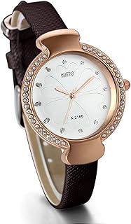 Damen Frauen Armbanduhr, Einfach Klassische Analog Quarz Uhr Leder Band Quarzuhren mit Gold modisch Sternenhimmel Design Zifferblatt, Braun Schwarz Pink