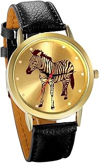 Damen Armbanduhr, Fashion Analog Quarz Zebra Elegant Casual Uhr Modisch Zeitloses Design mit Leder Armband, Farbe: Pink, Braun, Grün, Schwarz