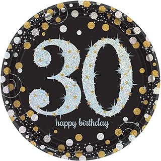 Neu: 8 Party-Teller * Sparkling Celebration * für den 30. Geburtstag | dreißig Jahre Happy Birthday Pappteller Partyteller Set schwarz Glitzer