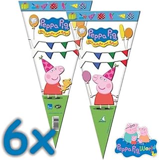 6 Partytüten * PEPPA PIG * für Party und Kindergeburtstag // CONO // Kinder Mottoparty Kinderparty Mitgebsel Geschenktüten Tüten Wutz