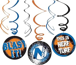 6 Deko-Wirbel * NERF * für Kindergeburtstag und Motto-Party | Hasbro Guns N-Strike Elite Super Soaker Mottoparty Kinder Geburtstag Decken Dekoration Swirl