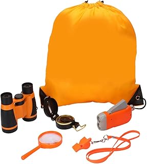 RiToEasysports Outdoor Adventure Set 6-teiliges Kids Explorer Kit mit 4x30 Kinderfernglas 4X Magnifier Whistle Flashlight Compass Rucksack