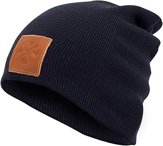 Manufaktur13 Slouch Beanie - Long Beanie Mütze, Strickmütze mit Echt-Leder/Stick Veredelung, Viele Farben zur Auswahl (M13)