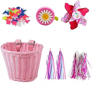 Queta Kinder Fahrradkorb Fahrrad Dekor Set Fahrradkorb Vorne Kinder mit Speichen Clip Sonnenblume Fahrradklingel Lenkerfransen Windmühle Jungen Mädchen DIY Lenkerkorb handgefertigter Rattan-Korb