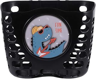 TOYANDONA Kinder Fahrradkorb Dinosaurier Muster Kunststoff Vorne Lenker Fahrradkorb Roller Korb für Kinder Jungen Mädchen (Schwarz)