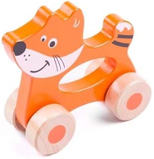 Brink Holzspielzeug Greifling Fuchs auf Rollen Holzspielzeug Baby Greifring Holz Rassel Räder Motorik, Tastsinn, visuelle Wahrnehmung
