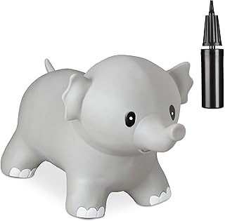 Relaxdays 10030818_111 Hüpftier Elefant, inklusive Luftpumpe, Sprungtier bis 100 kg, Hopser BPA frei, für Kinder, Hüpfspielzeug, grau