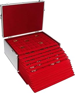 LINDNER Das Original Großer Münzen-Sammelkoffer mit 8 roten Münztableaus in 5 verschiedenen Tableau-Varianten, für 355 Münzen