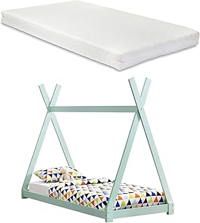 [en.casa] Kinderbett mit Matratze 90x200cm Mintgrün Tipi Design Kiefernholz Bett Holzbett Hausbett Kaltschaummatratze Öko-Tex Standard 100 Allergikergeeignet Atmungsaktiv