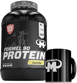 3kg Mammut Formel 90 Protein Eiweißshake - Set inkl. Protein Shaker, Riegel. Powderbank, Griffpolster oder Tasse (Vanilla, Mammut Keramik Tasse)
