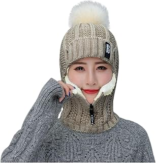 Zhiyao Beanie Strickmütze Hat Herren Damen Winter Mütze Bommelmütze Wintermütze warm gefüttert Ohrenschützer Hinzufügen Beflockung Thermal Radfahren mit Bommel-Mütze